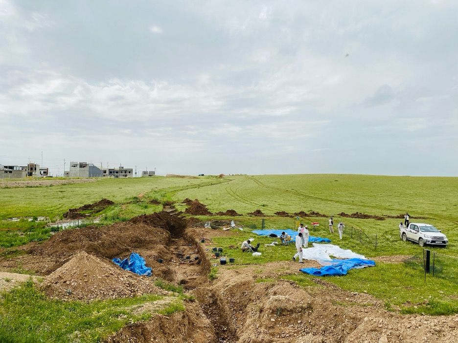 From the 4th to the 20th of April 2026, the technical teams, comprising the Mass Graves Directorate (MGD) at the Martyrs’ Foundation, the Medico Legal Directorate (MLD) at the Ministry of Health, and the International Commission on Missing Persons (ICMP) carried out excavation work at three mass graves located in the Al-Haramat and Al-Mushairfa neighborhoods of Mosul, Iraq. As a result of the excavation, 15 remains were exhumed, including those of at least three Yazidi women. An initial survey conducted in February 2026 by the technical teams led by the MGD, aimed at identifying and assessing sites and setting priorities before starting the excavation.